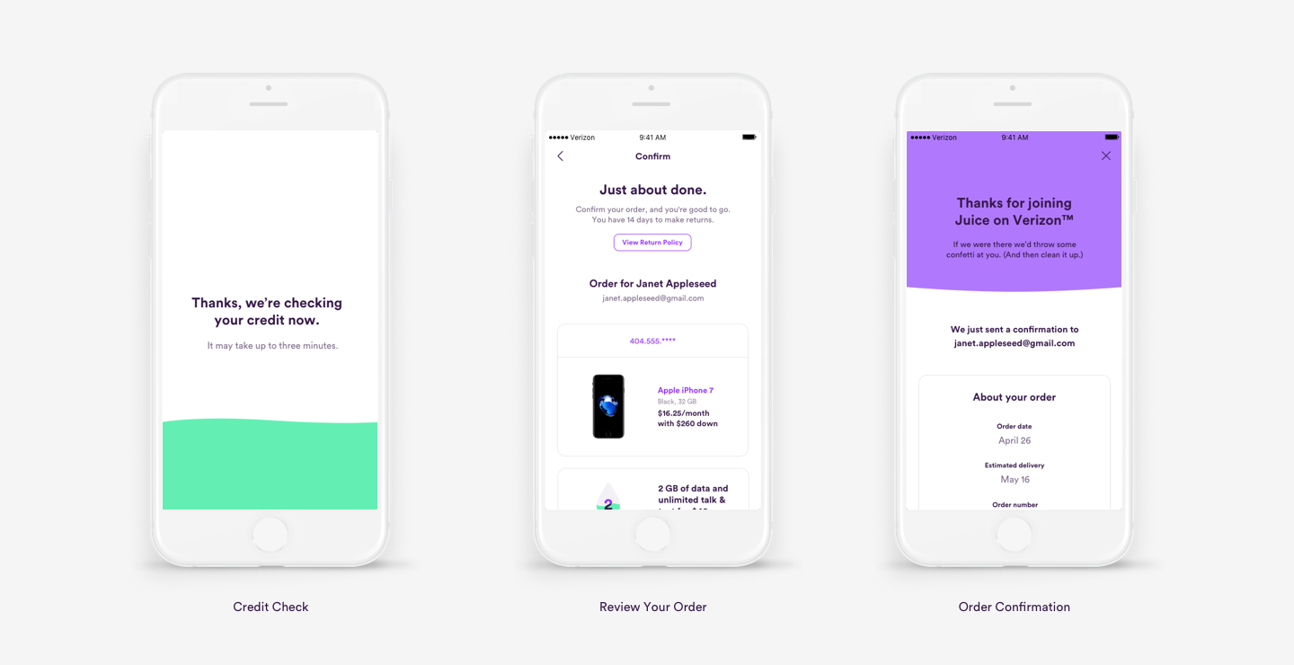 Juice on Verizon is the first mobile service that lets you control what you pay based on the data you use from your phone. Instead of the plans telecom companies have traditionally used, Juice allows you to pay as you go. Everything is controlled from the app. There is no brick and mortar for this product, so everything had to be designed as self-sustaining and easily navigable. The service also required it to be a completely accessible experience end-to-end.